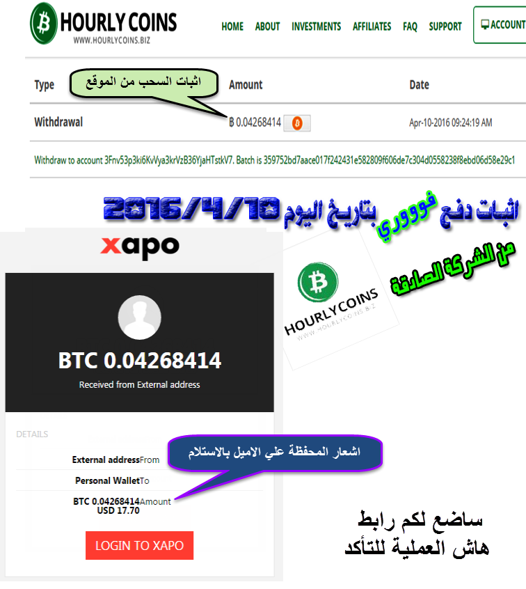 رد: افضل شركة hourlycoins لاستثمار البيتكوين bitcoin والتعدين والسحب الفوري كل ساعة